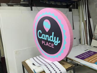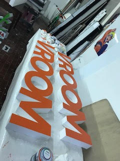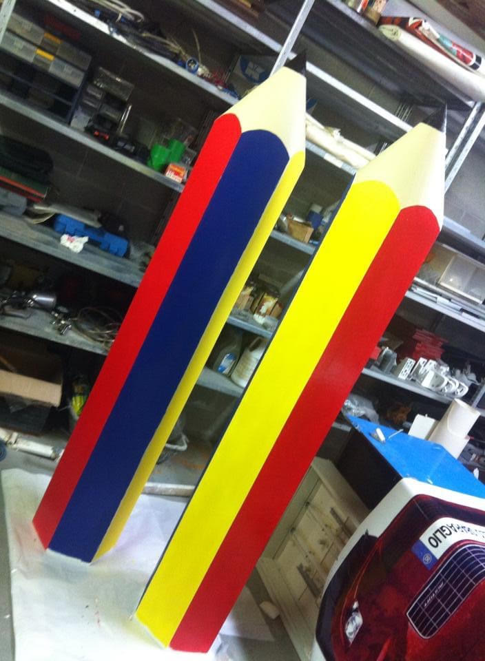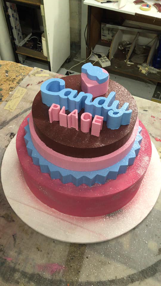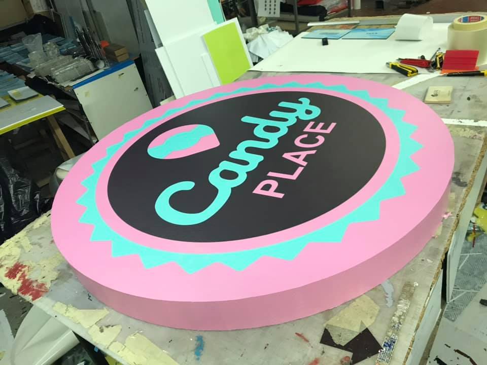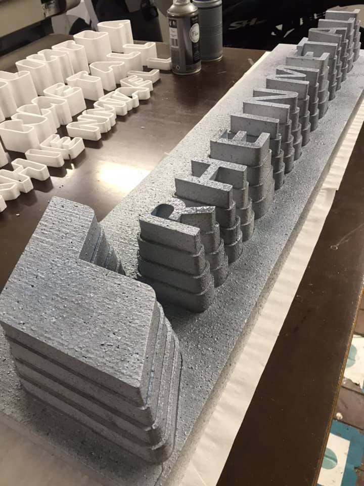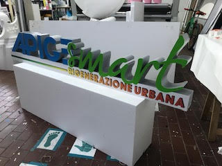 Per dare un qualcosa in più alla cartellonistica, anni fa pensammo che al solito adesivo stampato e piatto, potesse essere di aiuto una scritta a rilievo che avrebbe reso il cartello o l'insegna ancora più evidente. E fu così che mentre molti usavano il forex tagliato con la fresa ma che poteva avere uno spessore massimo di 2 cm, noi iniziammo ad usare il polistirolo ad alta densità, trattato da esterno con cementite e verniciato con acrilici o smalti all'acqua. Il risultato era ed è sempre notevole con scritte o disegni che possono essere realizzati con spessori da 5/10/20/30 cm, verniciati con effetti e sfumature di ogni tipo, dal legno al marmo, alla ruggine, ed hanno caratterizzato ormai le insegne che realizziamo per i nostri clienti.